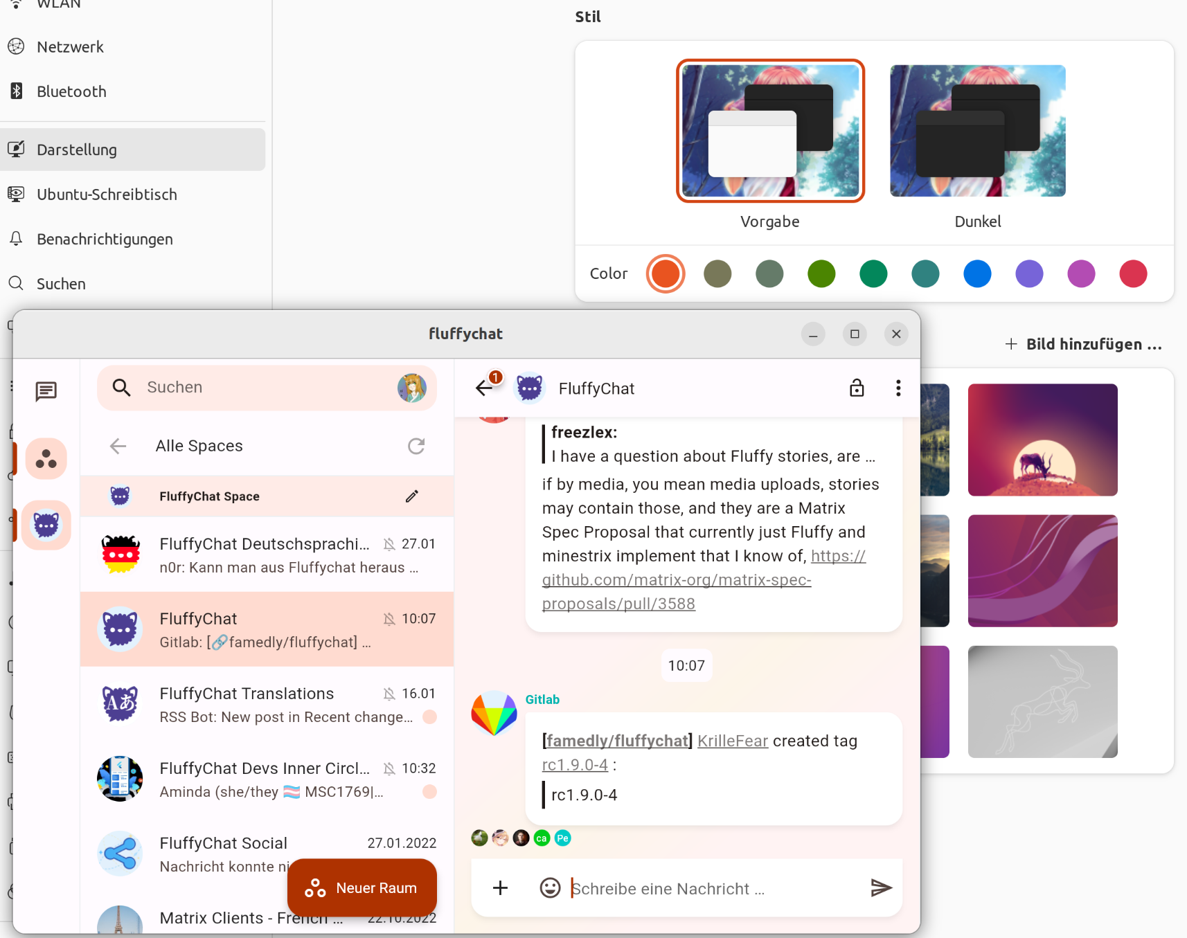 #fluffychat 1.9.0 has been released with some bugfixes, performance improvements and more Material You design. It now even uses the accent color on Ubuntu.