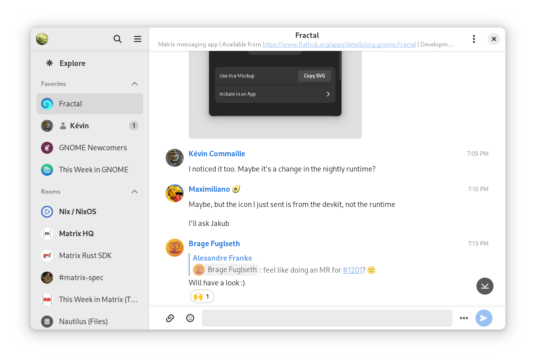 Fractal 5.rc1 is the first release candidate since the rewrite of Fractal to take advantage of GTK 4 and the Matrix Rust SDK, an effort that started in March 2021.