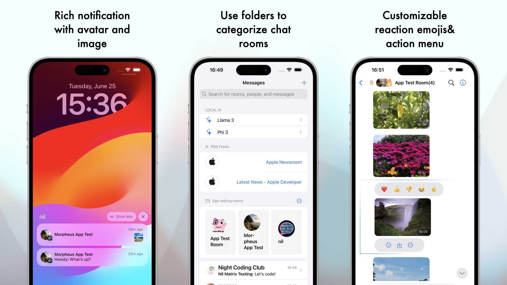 But what's special is that it comes with features like GIF by Tenor, RSS feeds, chat room folders, customizable message reaction emojis, system Memoji and sticker picker.